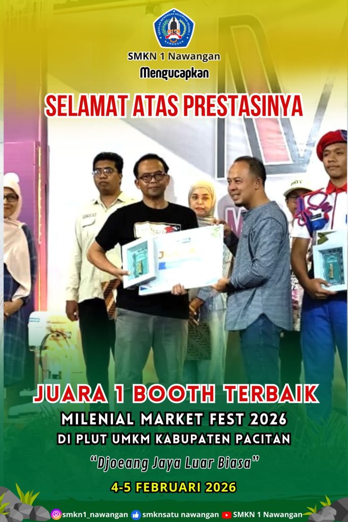 Pacitan, 05 Februari 2026 — SMKN 1 Nawangan kembali menorehkan prestasi membanggakan dengan meraih Juara Satu Booth Terbaik dalam ajang Milenial Market Fest Tahun 2026. Kegiatan ini diselenggarakan di PLUT UMKM Kabupaten Pacitan dan diikuti oleh berbagai sekolah, komunitas, serta pelaku UMKM dari wilayah Pacitan dan sekitarnya.Booth SMKN 1 Nawangan berhasil menarik perhatian dewan juri dan pengunjung berkat konsep penataan yang kreatif, inovatif, serta menampilkan produk-produk unggulan hasil karya siswa. Mulai dari desain booth yang estetik hingga strategi promosi yang komunikatif dinilai mampu merepresentasikan semangat kewirausahaan generasi muda.Kepala SMKN 1 Nawangan menyampaikan rasa bangga atas pencapaian tersebut. Ia menuturkan bahwa prestasi ini merupakan hasil kerja keras siswa dan guru dalam mengembangkan pembelajaran berbasis proyek dan kewirausahaan. “Penghargaan ini menjadi motivasi bagi kami untuk terus mendorong kreativitas dan jiwa entrepreneur peserta didik,” ujarnya.Milenial Market Fest 2026 sendiri merupakan ajang yang bertujuan untuk menumbuhkan semangat kewirausahaan di kalangan generasi milenial serta memperkenalkan produk lokal kepada masyarakat luas. Dengan prestasi ini, SMKN 1 Nawangan semakin menunjukkan eksistensinya sebagai sekolah yang aktif, kreatif, dan berdaya saing.